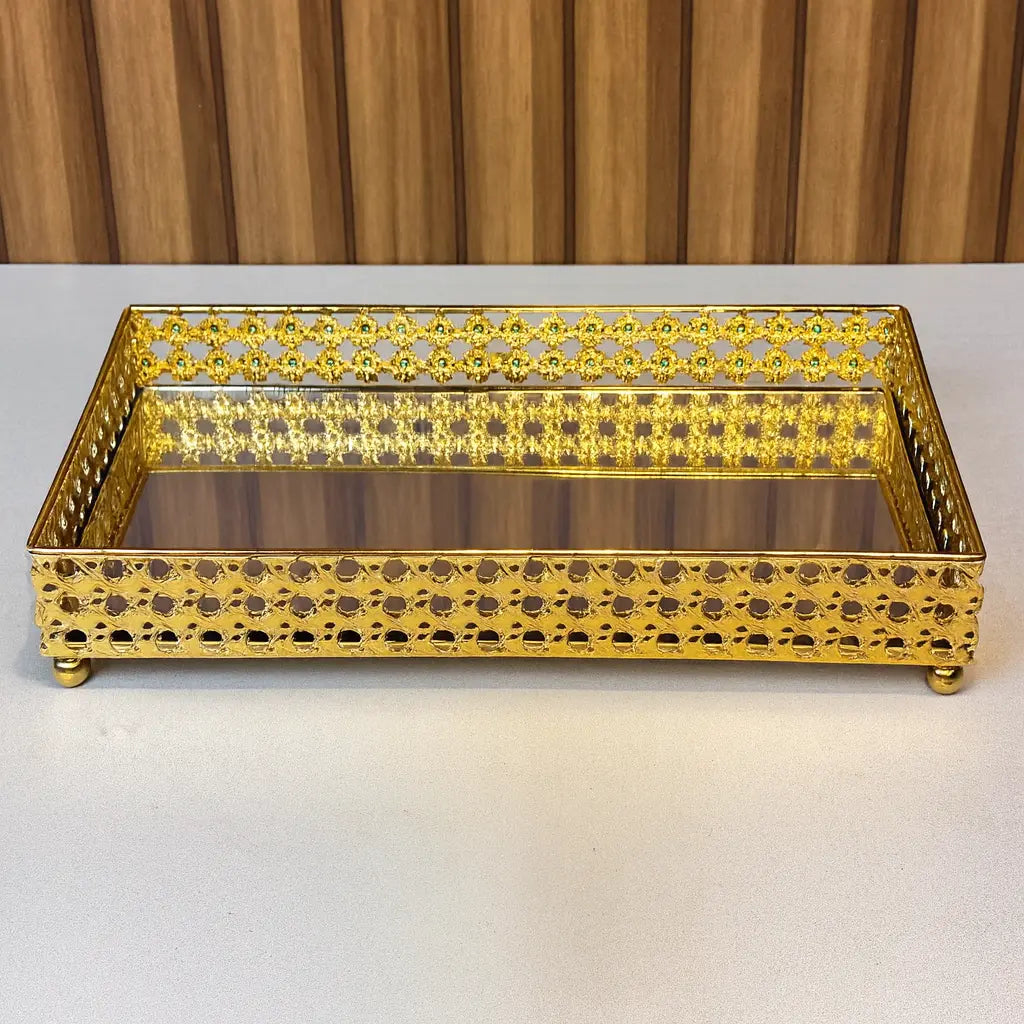 Bandeja Decorativa Retangular Luxo Dourada com...